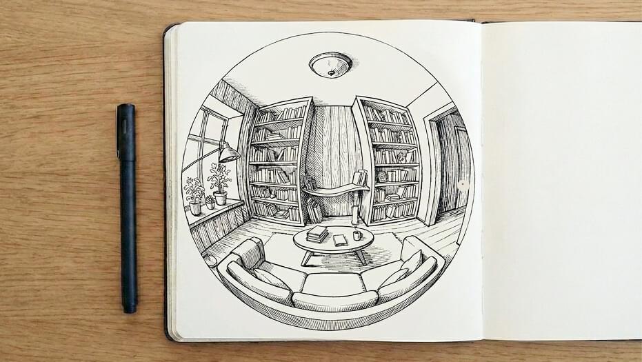 • How to draw windows, floors, and ceiling lines that curve gracefully around your viewer