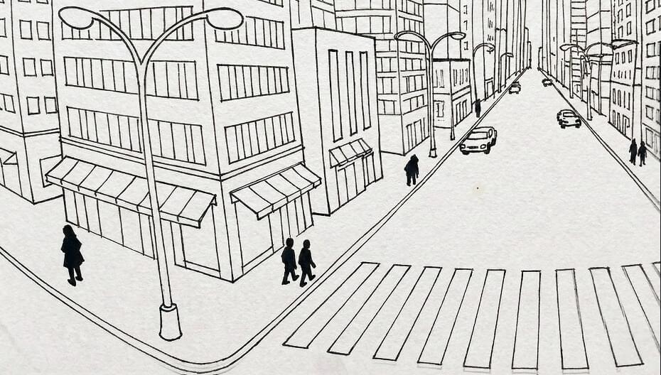 • How to draw sweeping streets that guide the viewer’s eye into the scene